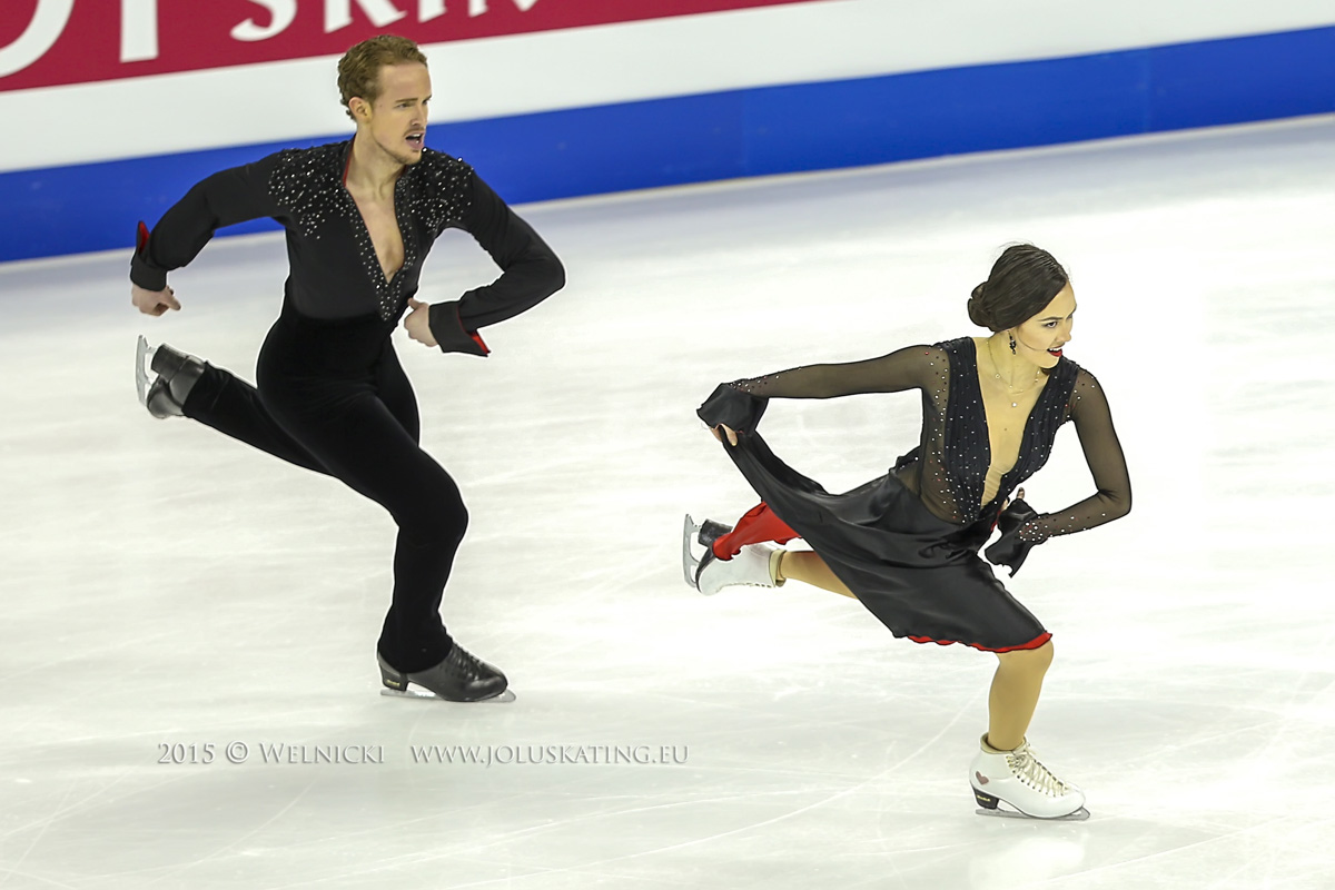 Gesundheitlich geht es Alexander Gazsi inzwischen etwas besser und er kann heut mal wieder das Bett verlassen . Inzwischen hat es auch noch andere Läuferinnen und Läufer (ca.8) mit der Magen – Darm Grippe erwischt (u.a. auch Kerstin Frank/ ÖST) die ebenfalls ihren Start zurück ziehen musste. Derzeit führen A. Stepanova/I. Bukin aus Russland nach einem Beatles Cover (Eleanor Rigby) das Feld mit 156.95 Pkt. an. Diese wurde inzwischen an K. Monko/K. Khaliavin (RUS) mit 159.13 Pkt. abgegeben. Unmittelbar vor der letzten Gruppe führen nun nach Walzerklängen (Rosen aus dem Süden/An der blauen Donau) souverän die Geschwister Maia und Alex Shibutani aus den USA, die fast durchweg Level 4 für alle Elemente erhielten mit 172.03 Pkt. Wir wurden erneut mit dem Ausschnitt aus dem Konzert Nr. 23 von W.A. Mozart von den französischen Europameistern die nun auch Weltmeister 2015 wurden verzaubert. G. Papadakis/G. Cizeron erreichen durchweg Höchstnoten, Level 4 überall !!! Und 4x die Höchstnote 10 ! Mit 184.28 Pkt verweisen sie M. Chock/E. Bates aus den USA mit der Musik, ein Amerikaner in Paris auf den Silberrang (181.28 Pkt.) Nur Bronze blieb für K .Weaver/A. Poje aus Kanada. Die vier Jahreszeiten wurden etwas zu lasch/bieder vorgetanzt (179.42 Pkt). Mit dem undankbaren 4. Platz müssen A. Cappellini/L.Lanotte aus Italien vorlieb nehmen. Russlands Eistanztrio bleiben nur die Ränge 7-9. Sie büßen damit den dritten Startplatz ein.